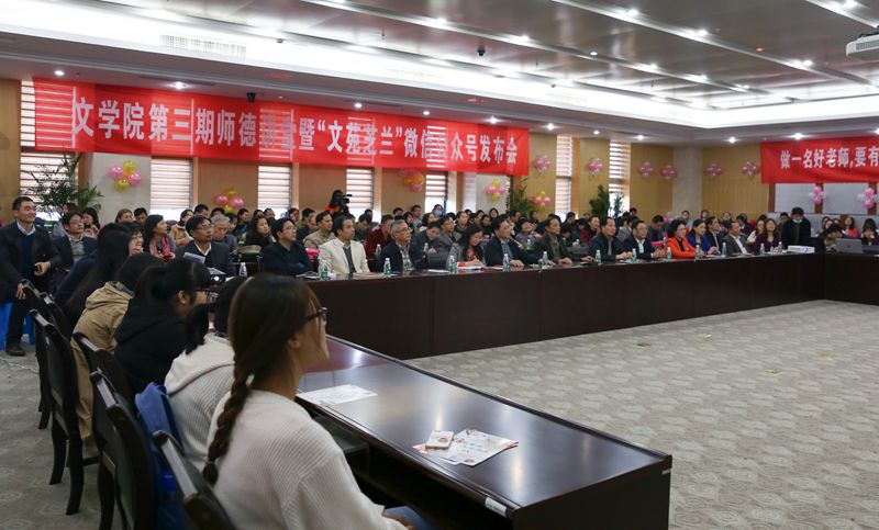 11月2日,由海星tv 党总支主办、海星tv 团委学生会承办的“含章素质.玉絜渊清”第三期师德讲堂暨“文苑芝兰”微信公众号发布会在图书馆508举行,校党委副书记、副校长江应中、学校相关职能部门领导、海星tv 党建督导受邀出席,海星tv 全体教师及学生代表参加了本次活动。