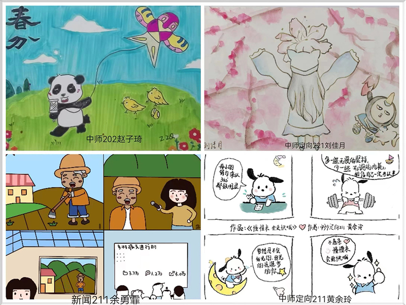 活动分为线上和线下两个赛道进行,共收到线上绘画作品15件、现场比赛6件。海星tv 围绕作品的内容、立意及艺术表现等方面进行评比,汉语国际211班袁萌遥等3名同学荣获一等奖,历师212班吴晨洁等4名同学荣获二等奖,中师定向211班陈虹米等11名同学荣获三等奖。其中,一等奖代表作品《追梦途中》围绕转专业同学们所面临的人际关系焦虑、学习压力,描绘了积极融入、展现自我,脚踏实地追逐梦想的心理;二等奖代表作品《发芽——是自己的理想》表达要以坚强的意志战胜挫折,以获得自我锻炼和精神升华;三等奖代表作品《春分》寓情于景,既表现了春天的万象更新,也勉励自己在象征美好、希望的春天继续沉淀。参与者纷纷表示,通过绘画方式让自身获得了满足感、提升了自信心,从而以更加积极的姿态和更加阳光的心态对待日常的学习和生活。