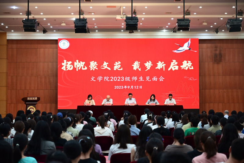 9月12日上午,海星tv 在大学生活动中心举办以“扬帆聚文苑,载梦新启航”为主题的2023级师生见面会。