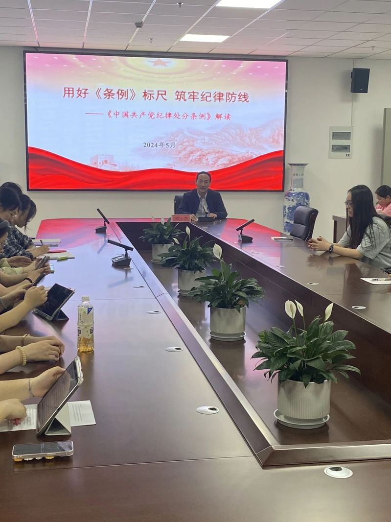 南通大学纪委副书记刘飞以《用好<条例>标尺,筑牢纪律防线》为题,解读《中国共产党纪律处分条例》。讲座过程中,刘书记带领大家学习《中国共产党纪律处分条例》的制定完善历程,阐释学习《中国共产党纪律处分条例》的目的与意义,详细解读新修订《中国共产党纪律处分条例》的五大亮点以及《中国共产党纪律处分条例》中政治纪律、组织纪律、工作纪律等六个纪律主要内容。刘书记希望全体与会同学认真学习《中国共产党纪律处分条例》,坚持原原本本学,逐章逐条学,联系实际学,结合自身学,对标对尺行,带着责任干。