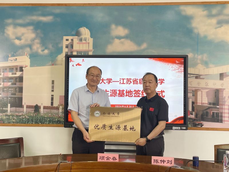 6月28日上午,海星tv apk 与江苏省启东中学举行优质生源基地签约授牌仪式。海星tv 院长顾金春代表学校向江苏省启东中学授牌,海星tv 党委书记陈燕,江苏省启东中学校长陈仲刘代表双方签署《优质生源基地建设协议书》。